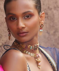 Oxidized Silver Choker Necklace with Colorful Stone Work