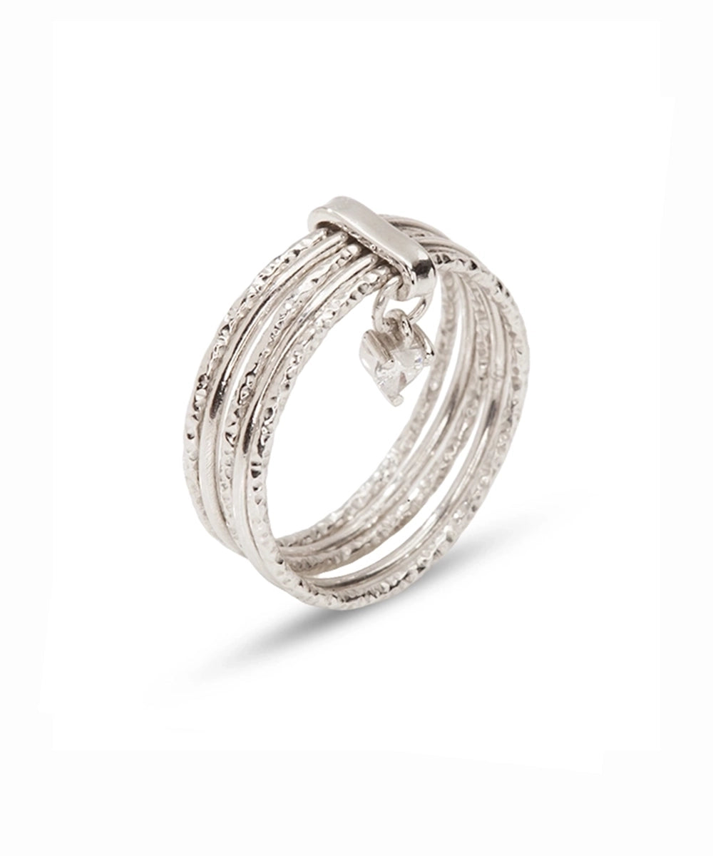 Silver Heartbeat Dangle Multi-Band Ring