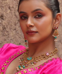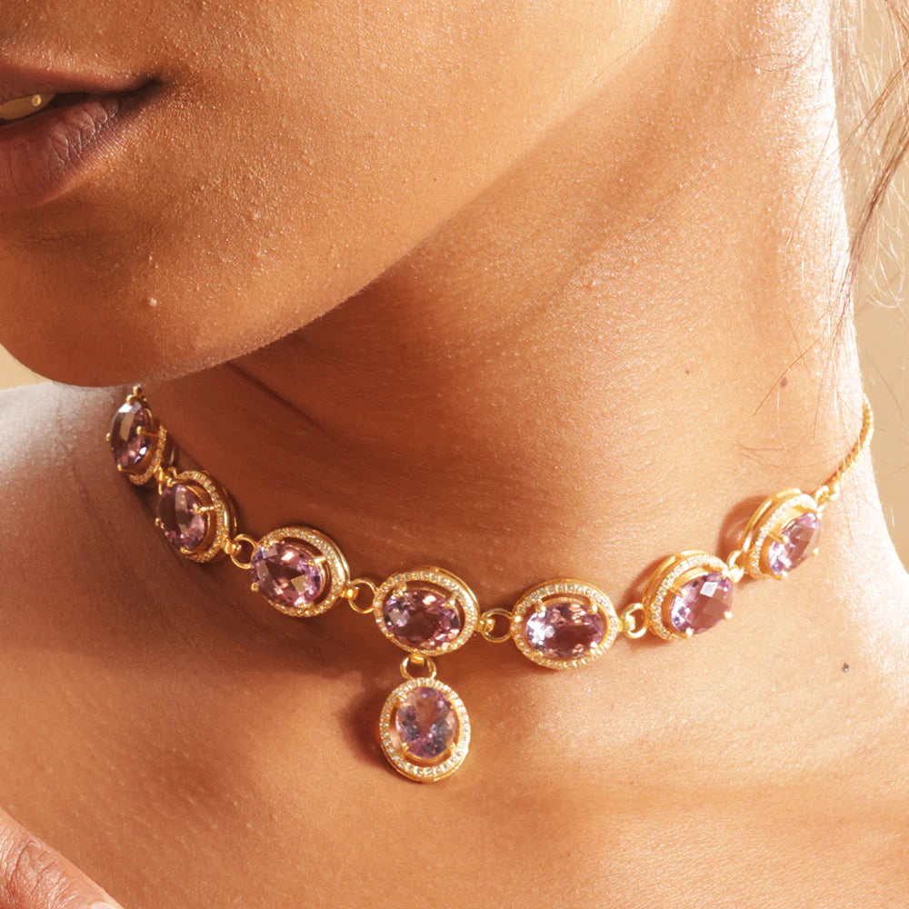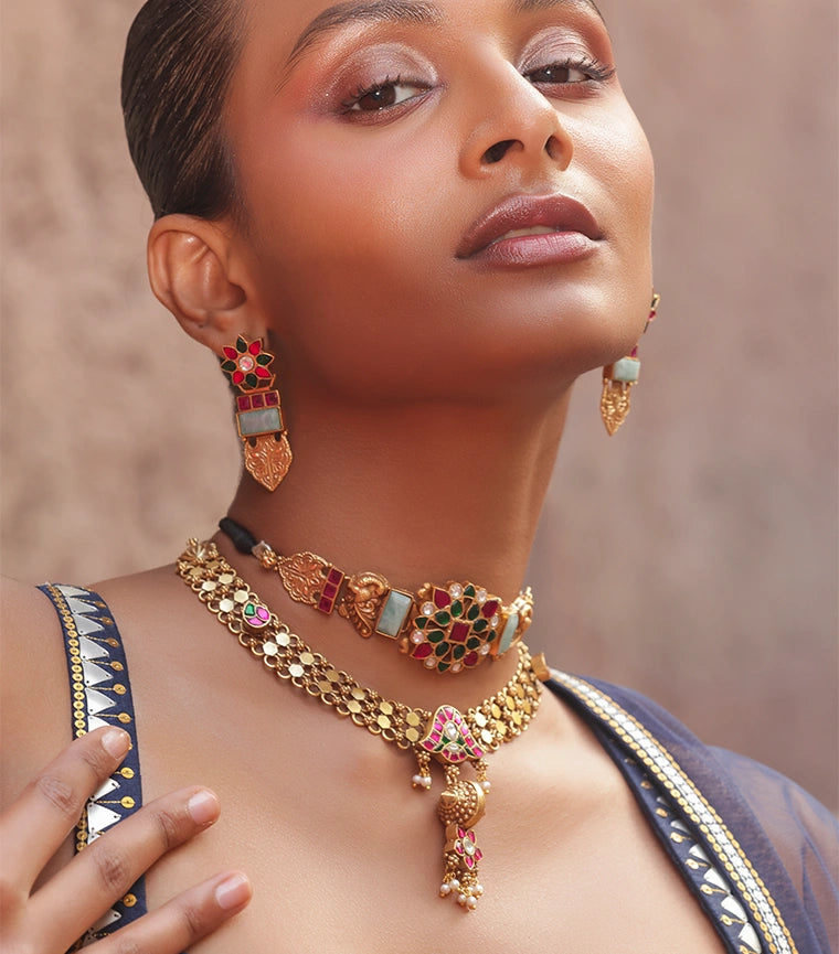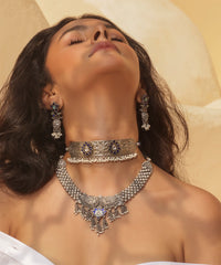 Oxidized Silver Choker Necklace with Colorful Stone Work