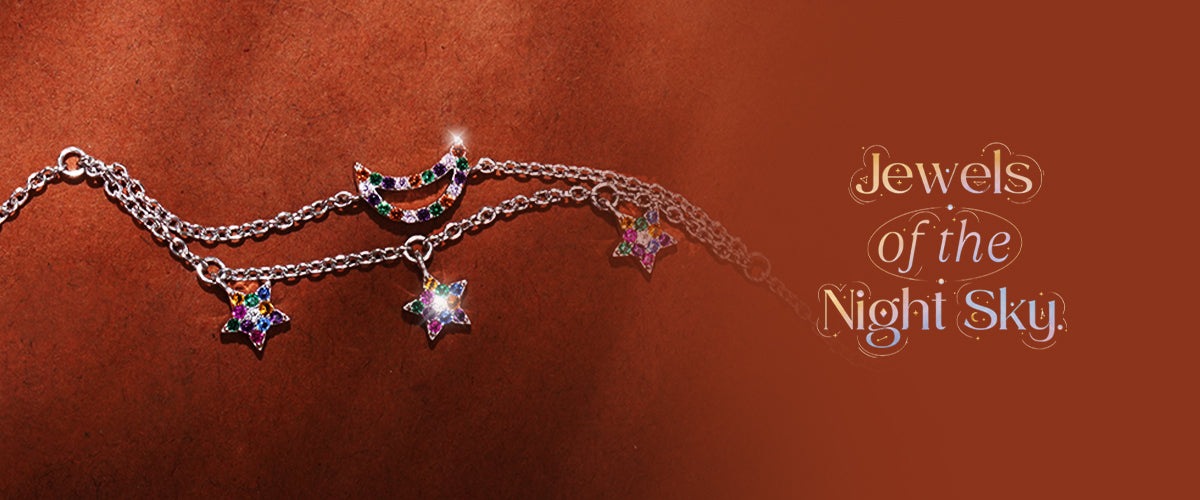 Silver Layered Stars and Crescent Moon Charm Bracelet