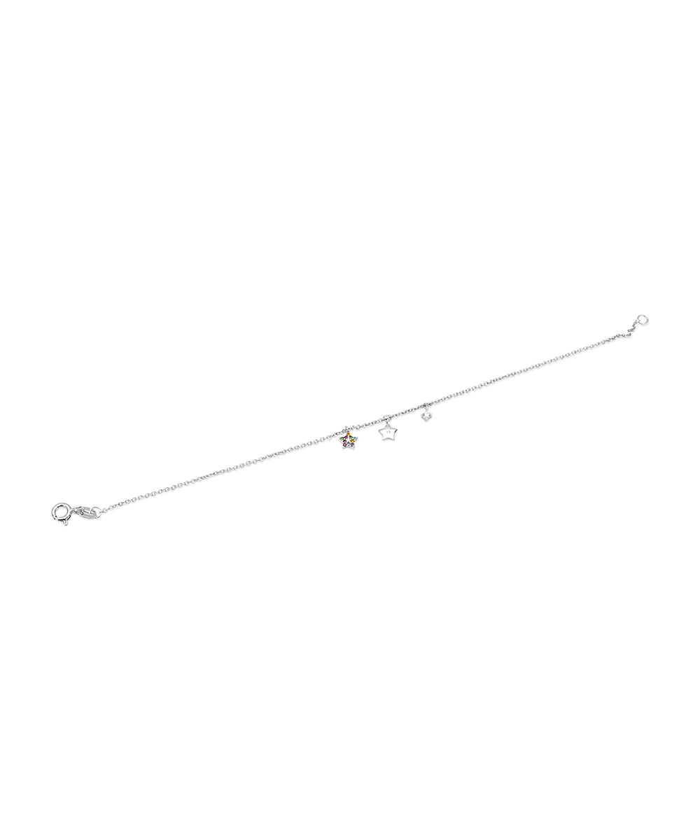 This bracelet features a delicate chain adorned with a playful mix of dangling star charms.