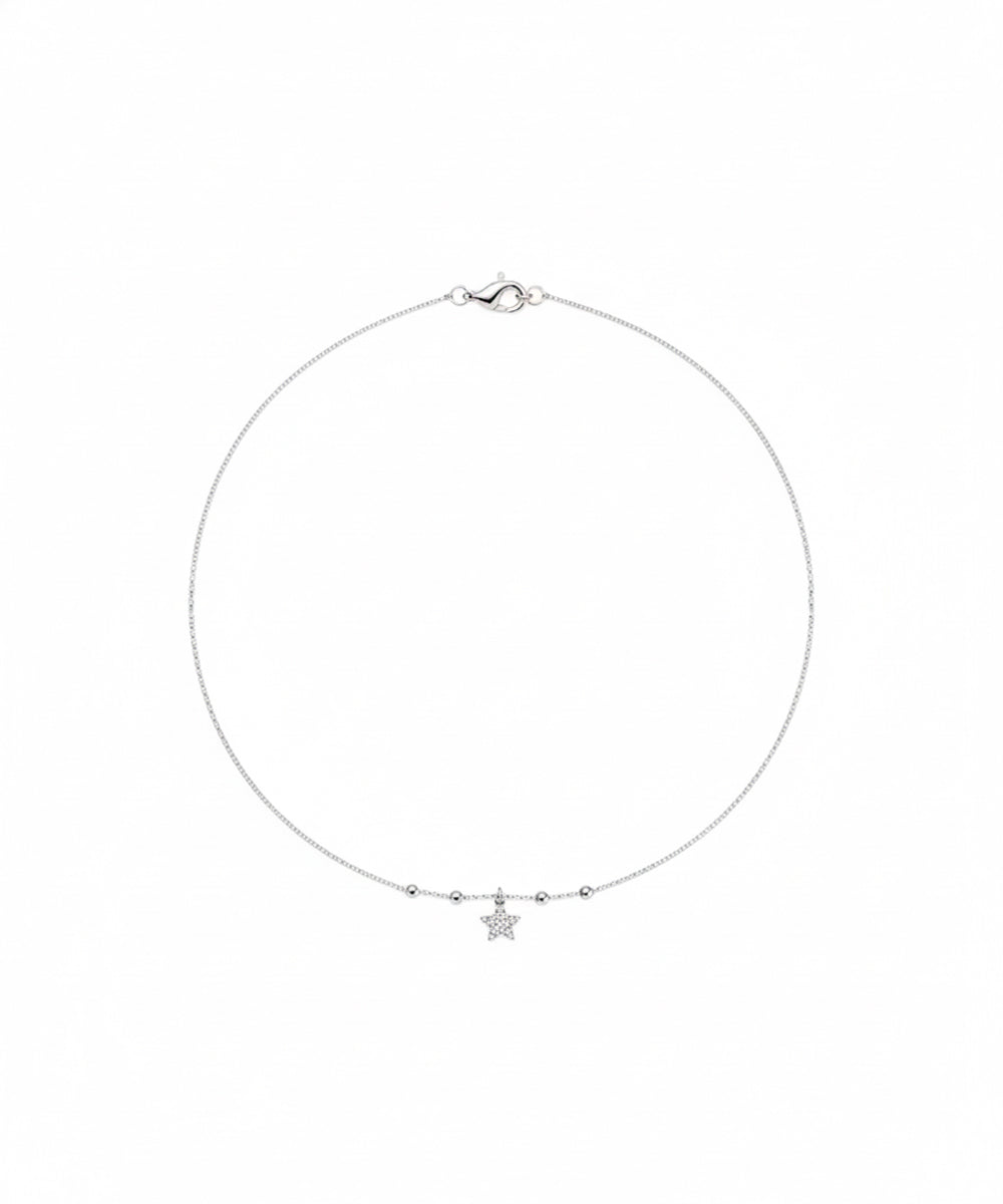 A dainty bracelet featuring a silver satellite chain with a single, sparkling star charm dangling near the center. The charm is detailed with a pave finish for added shimmer